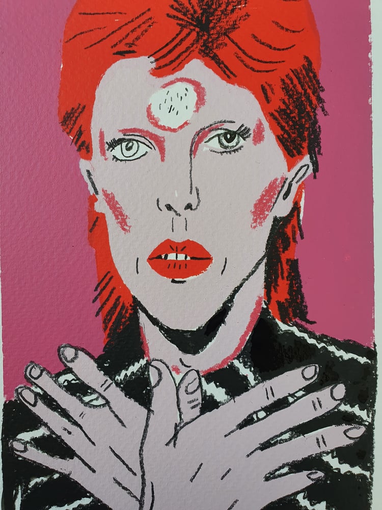 No.8 of 15 original drawings of Bowie. Mixed media. Silk screen and hand drawn illustration on fine watercolor paper. Signed and numbered. Every piece unique and handmade. Shipped with tracking number.