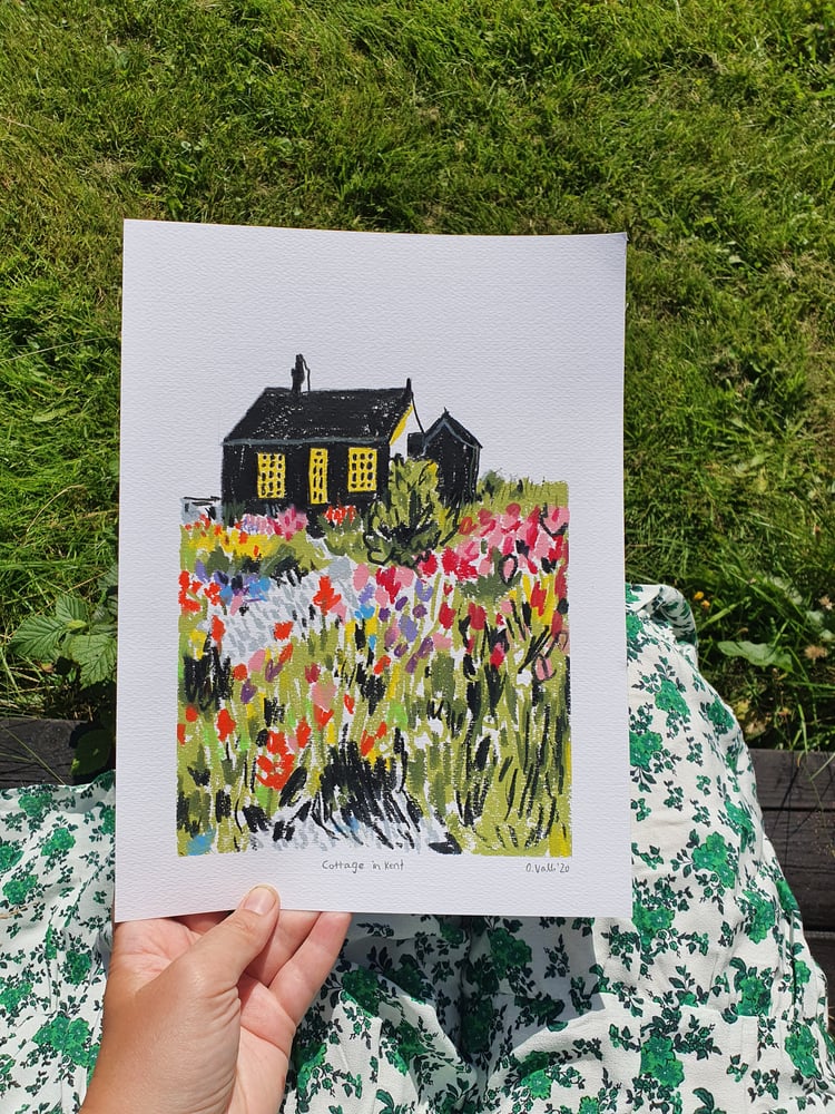 This original "cottage in Kent" drawing is my favourite. I love the british countryside and the beautiful gardens in England, my second home. Drawn with wax pastels on fine cold pressed watercolor paper. Size 21x32. Signed. Packaged and shipped gently with a tracking number.