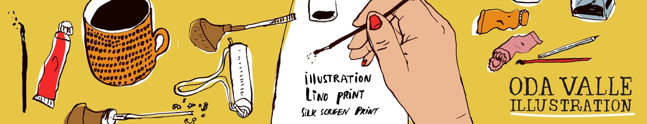 Yellow and black ink drawn with brush pen on 300 g watercolor paper.