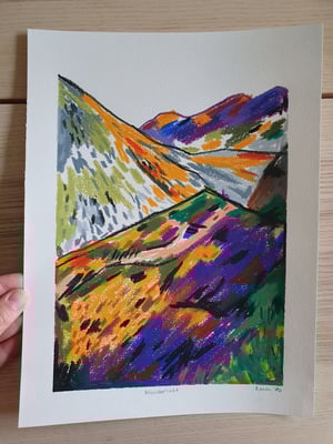 Original wax pastel drawing "Wanderlust". A one of a kind artwork. Size 24x32 cm. Signed. Drawn on finest watercolor 200g paper. Carefully shipped and packed. Posted with a tracking number.