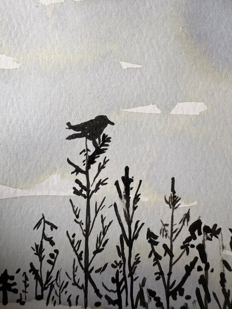 Ink and watercolor painting/drawing. Size 15x 10,2 cm. Title: «Skumring» ( dusk). Drawn on watercolor paper. Signed.